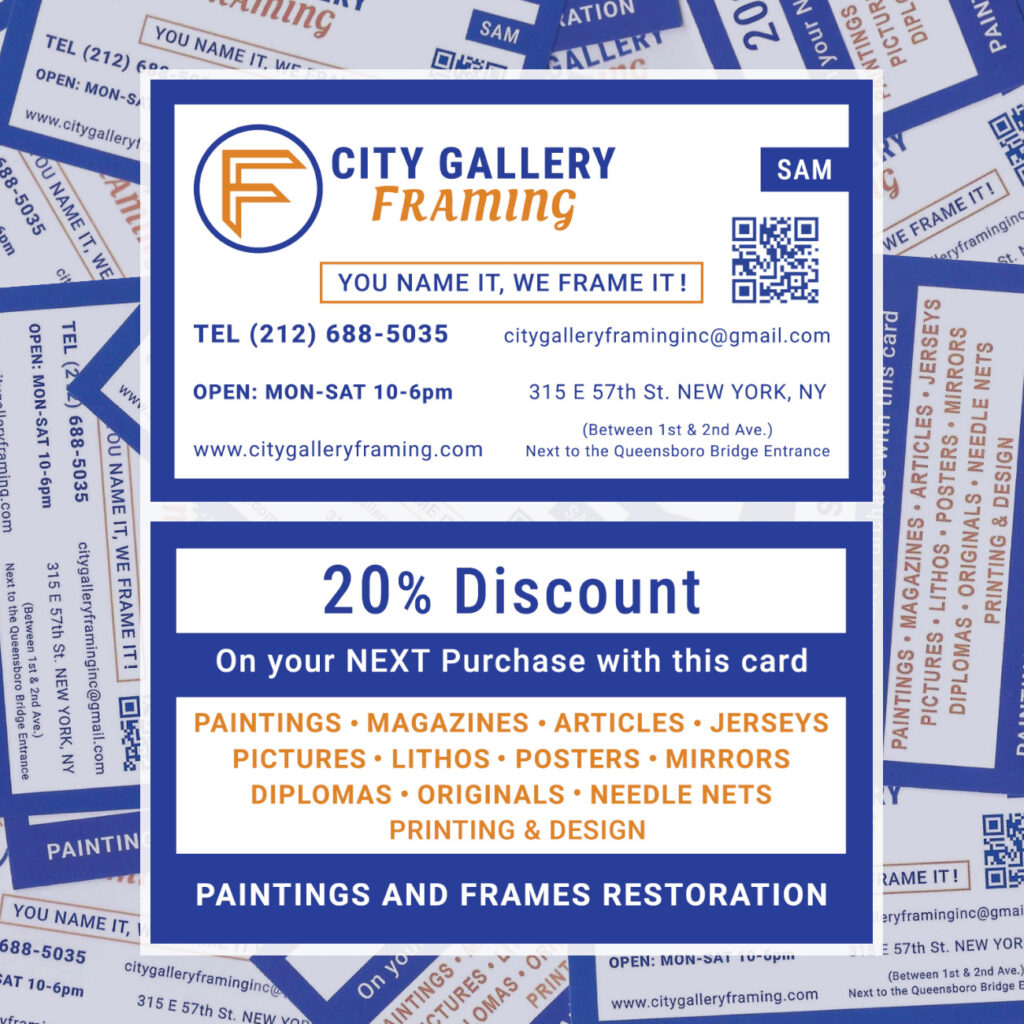 City Gallery Framing is a custom framing and art restoration business located in Midtown East, Manhattan. With over 25 years of experience, their framing and artwork are world renowned. From locals in the neighborhood to big corporations, they have been the go-to for many around the world. With professional framers, City Gallery Framing helps their clients select the perfect frame, mat, and glass to complement their artwork. This project includes branding, marketing and a website that you can find at: